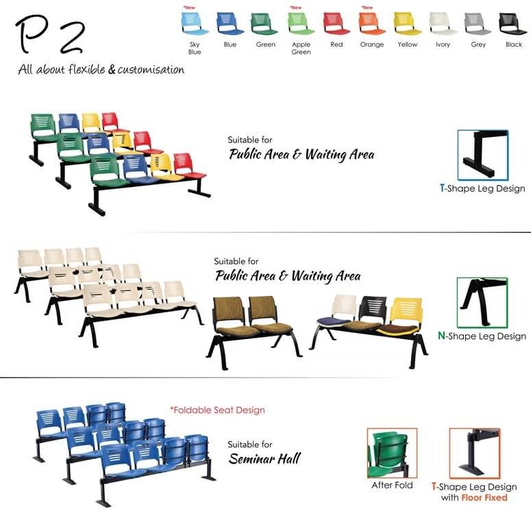 • Dimension: 2070W x 600D x 800H mm (Four Seater Link Chair)